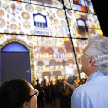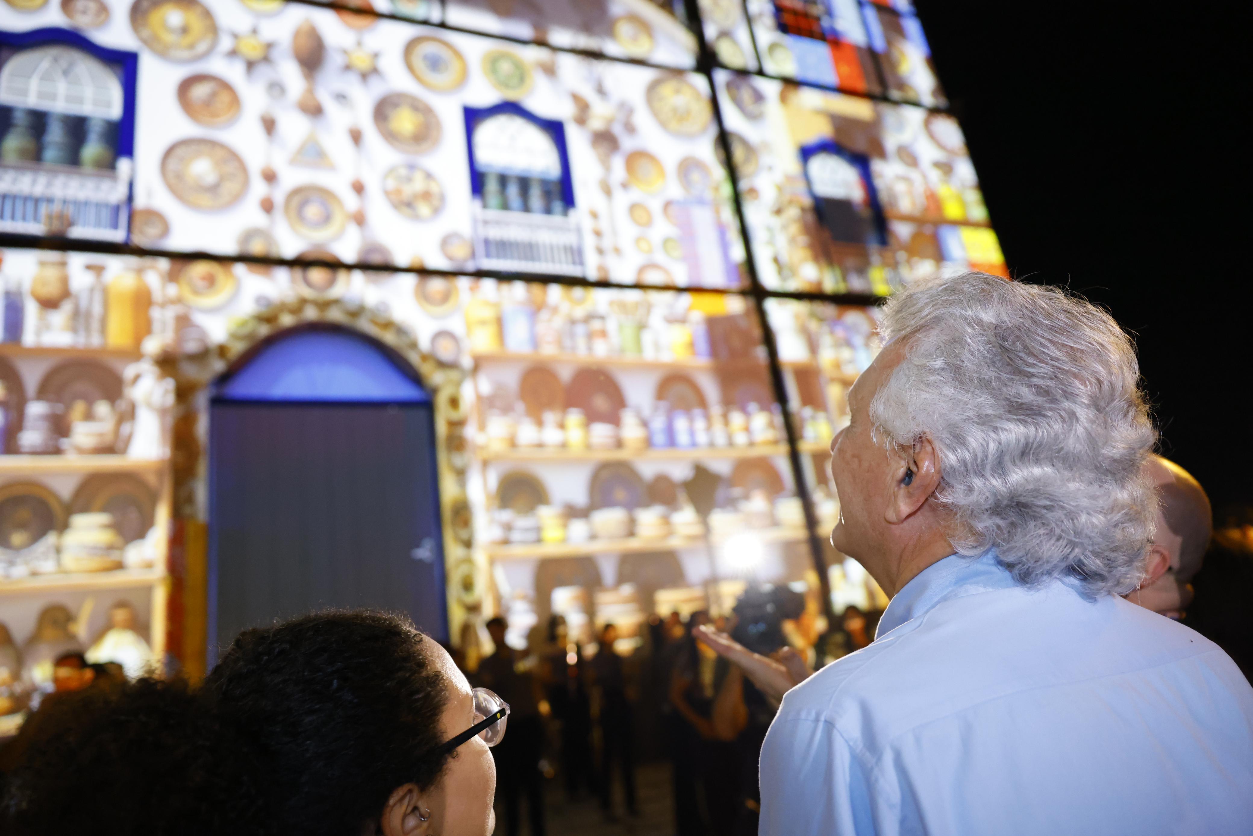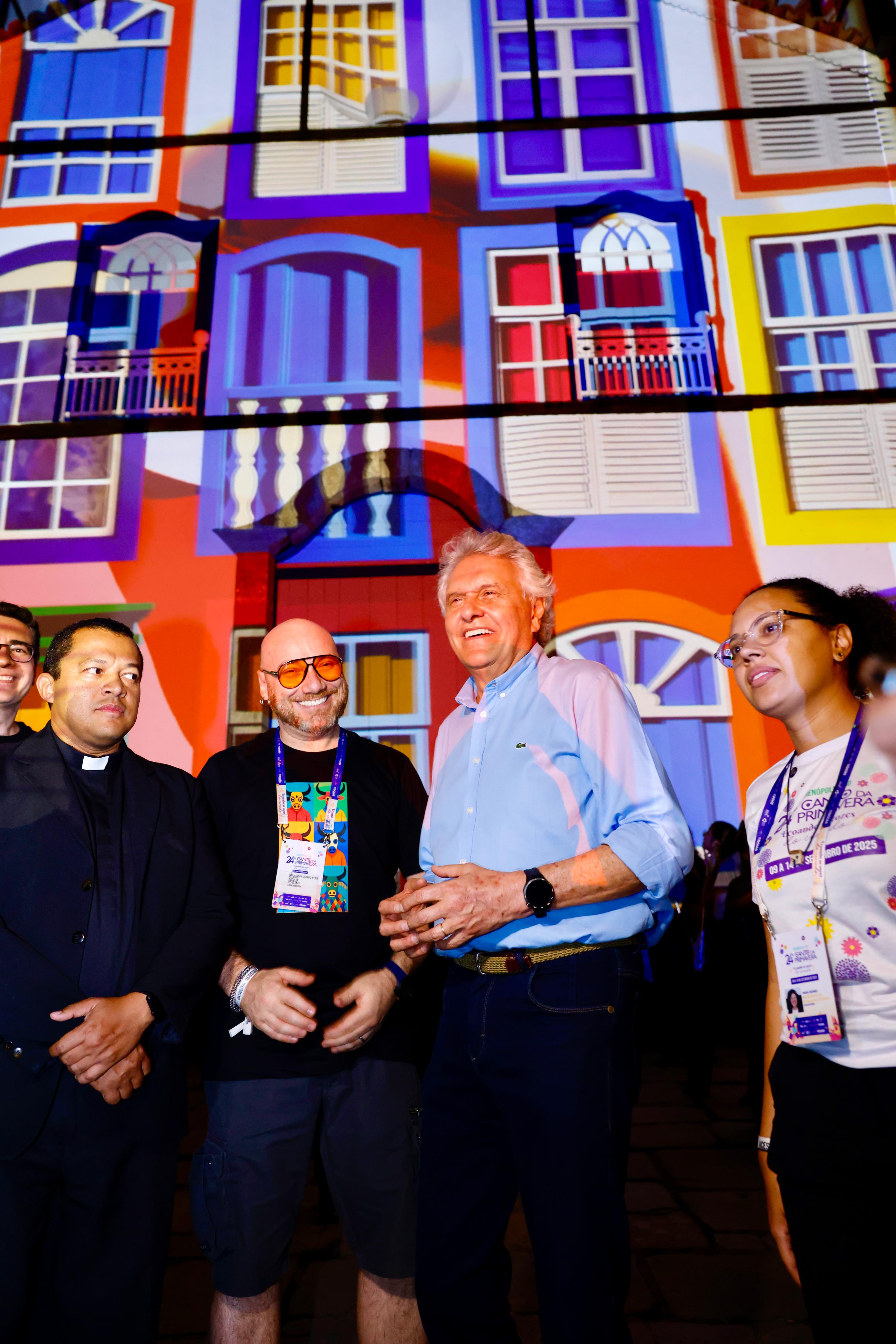 O governador visitou os palcos do Cavalhódromo, onde foram instalados piso, banheiros, camarins e stands, e do Largo da Igreja Matriz, onde assistiu à projeção mapeada assinada pelo artista multimídia goiano VJ Paulinho Pessoa. A apresentação transformou a fachada da Igreja Nossa Senhora do Rosário em um telão com cenas que retratavam elementos da memória e da identidade cultural pirenopolina, como as Cavalhadas, o artesanato e a Serra dos Pirineus. “Transformou essa matriz aqui num grande telão de cenas lindas, momentos históricos da nossa querida Pirenópolis”, parabenizou o governador.