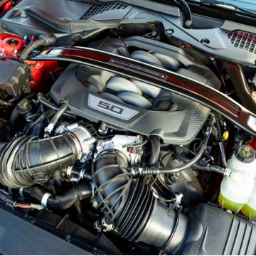 O seu motor, uma versão especial do 5.0 V8 Coyote de quarta geração, com 507 cv (@ 7.250 rpm) e 57,8 kgfm (@ 4.900 rpm), gera mais de 100 cv por litro e entrega 80% do torque disponível a apenas 2.500 rpm.